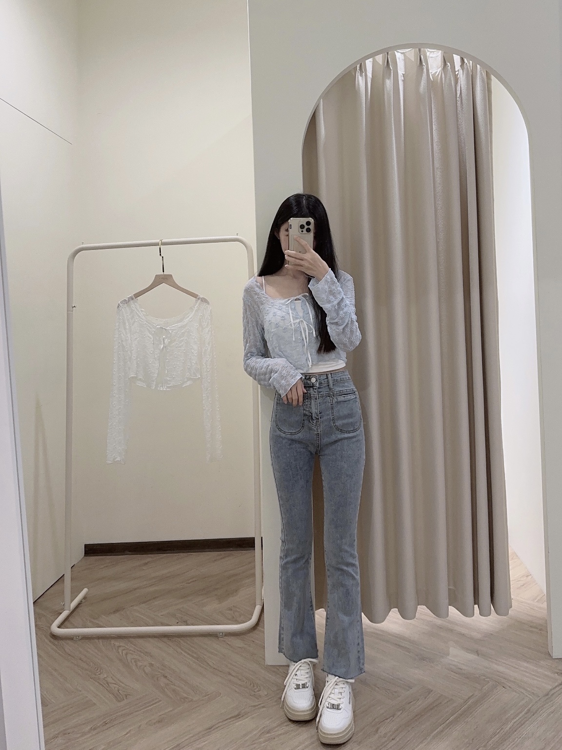 #版型偏小復古刷色微喇叭彈性牛仔長褲