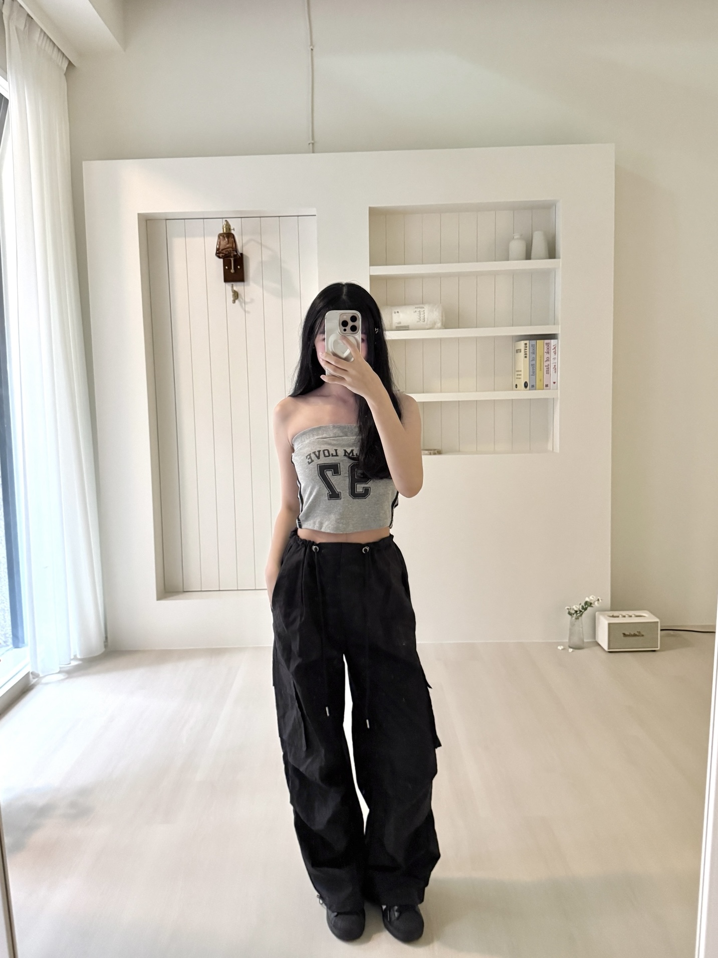 # 抓皺感縮腰抽繩工裝褲