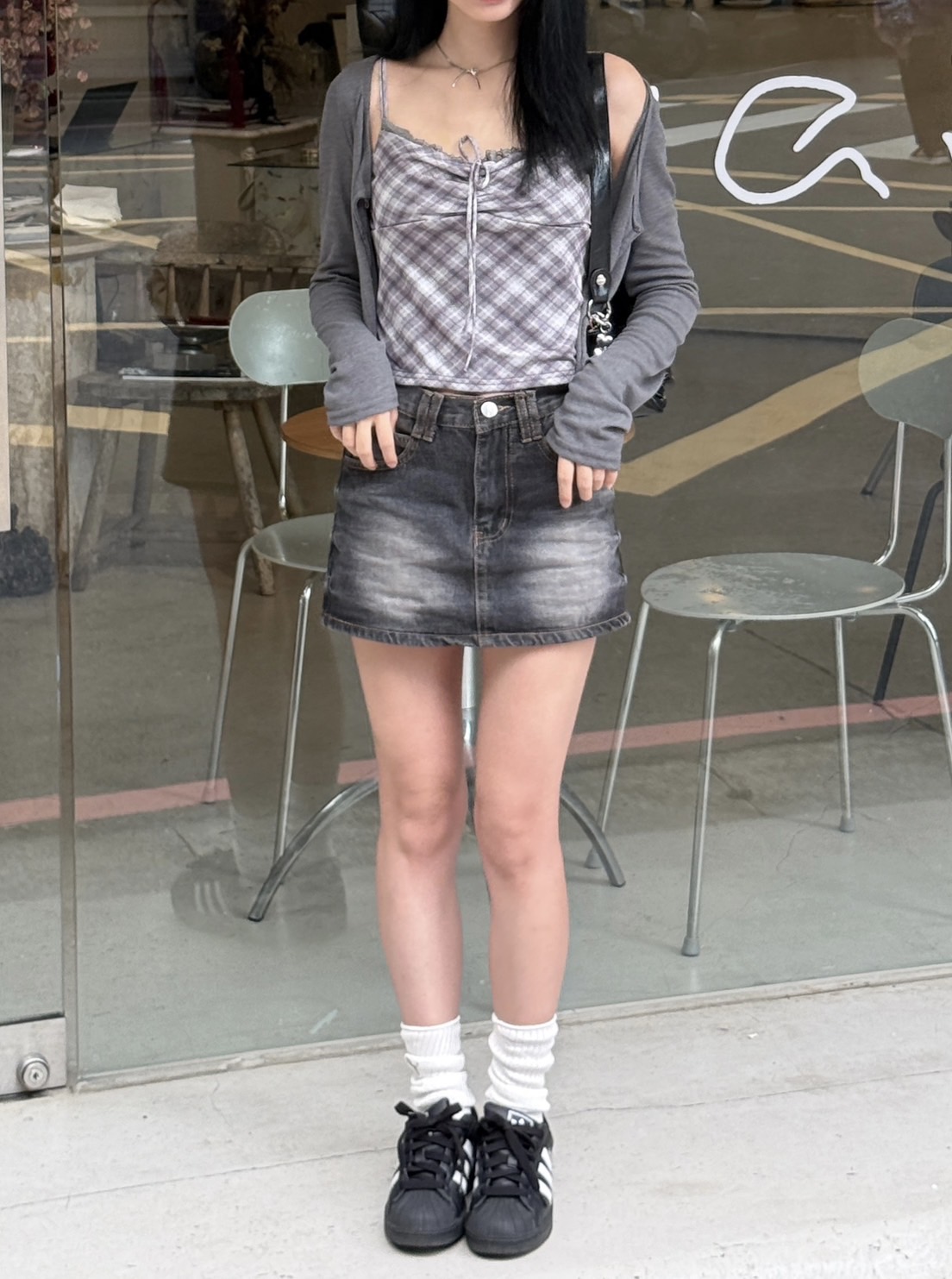 版娘自留! # 小個子深灰刷色牛仔短裙