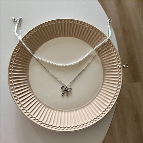 珍珠蝴蝶結雙鏈項鏈౨ৎ