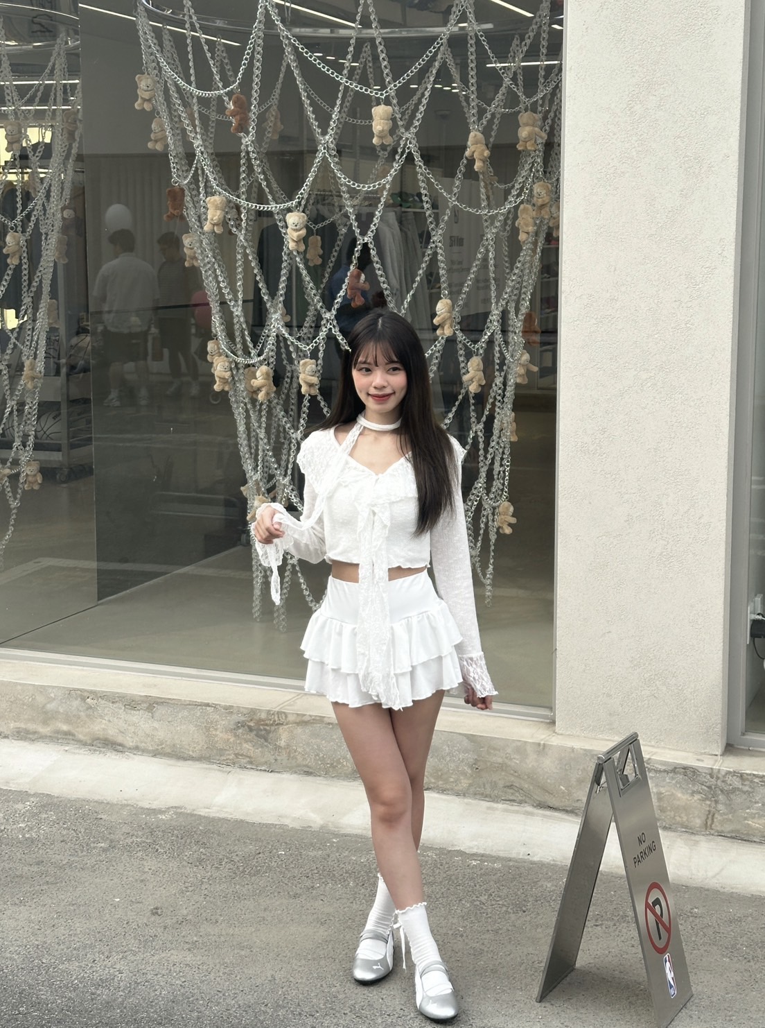 # 韓製蕾絲荷葉領飄帶長袖