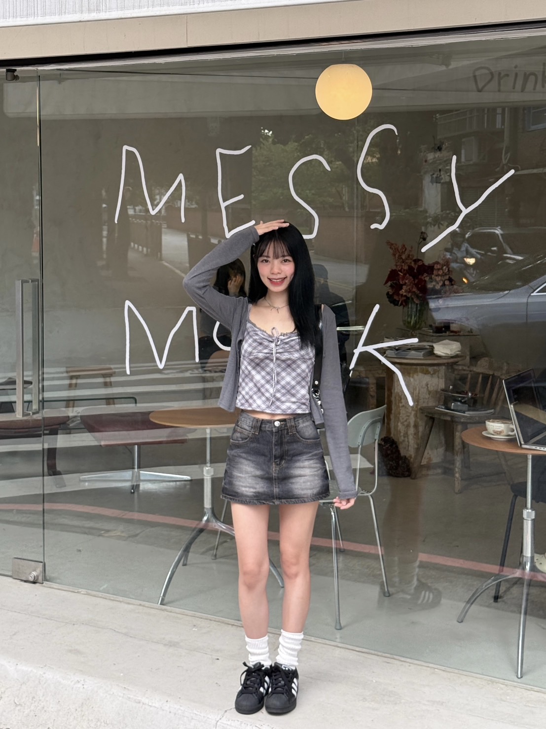 # 菱格紋拼接蝴蝶結小背心罩衫set