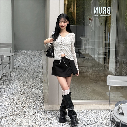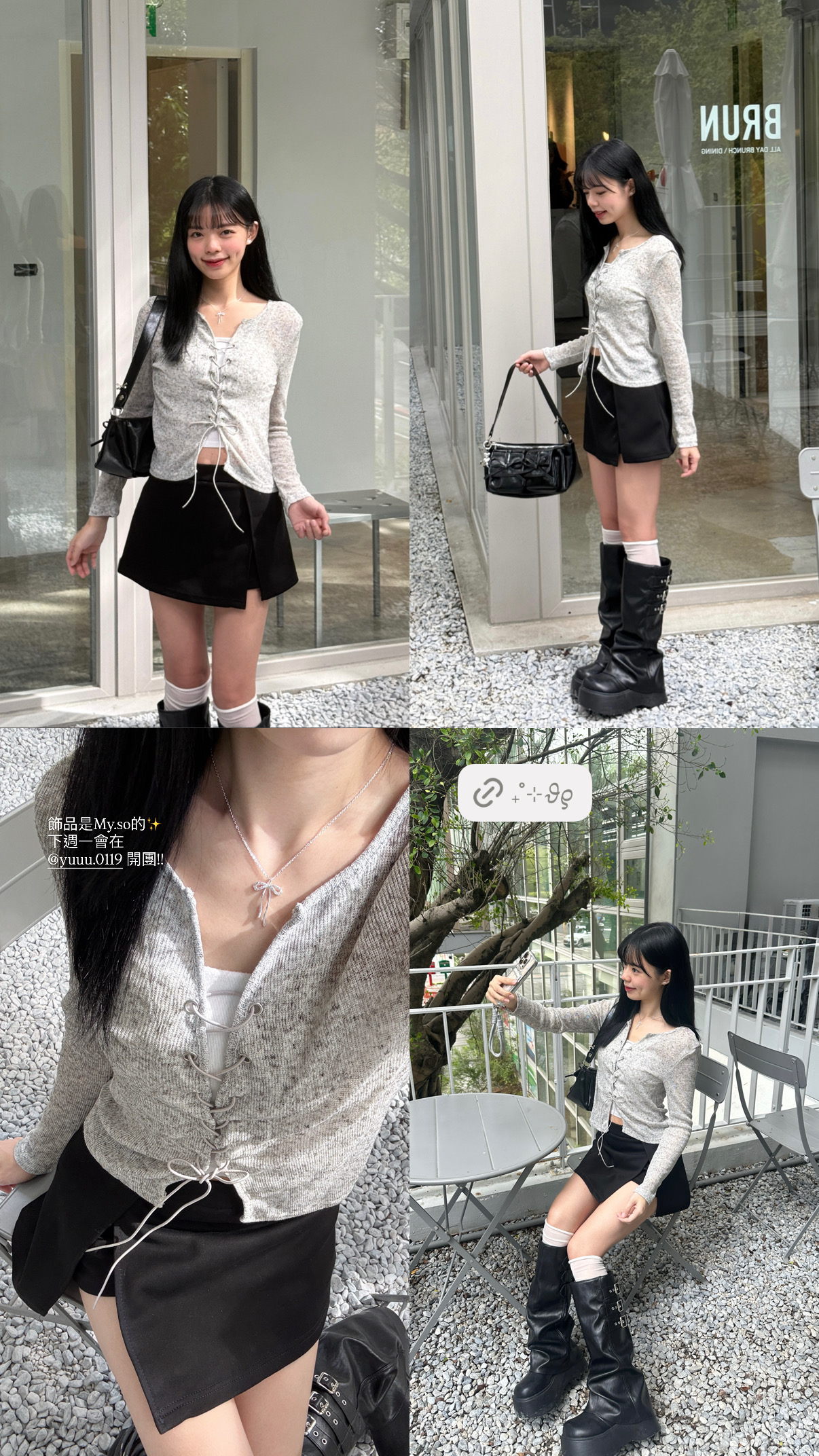 混灰感色調微透細針織+交叉綁帶౨ৎ