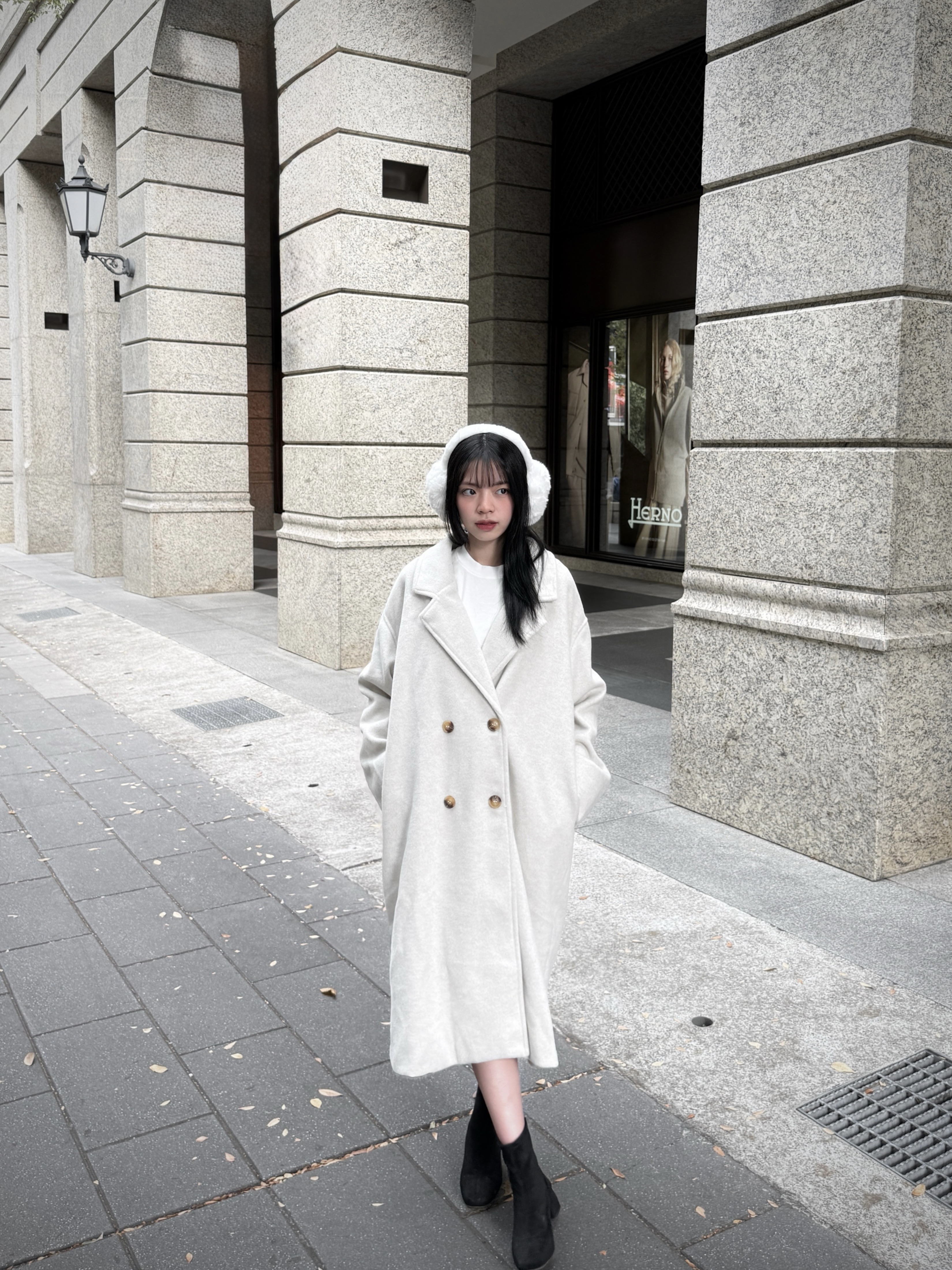 外套是柔軟好摸的羊毛感毛呢面料