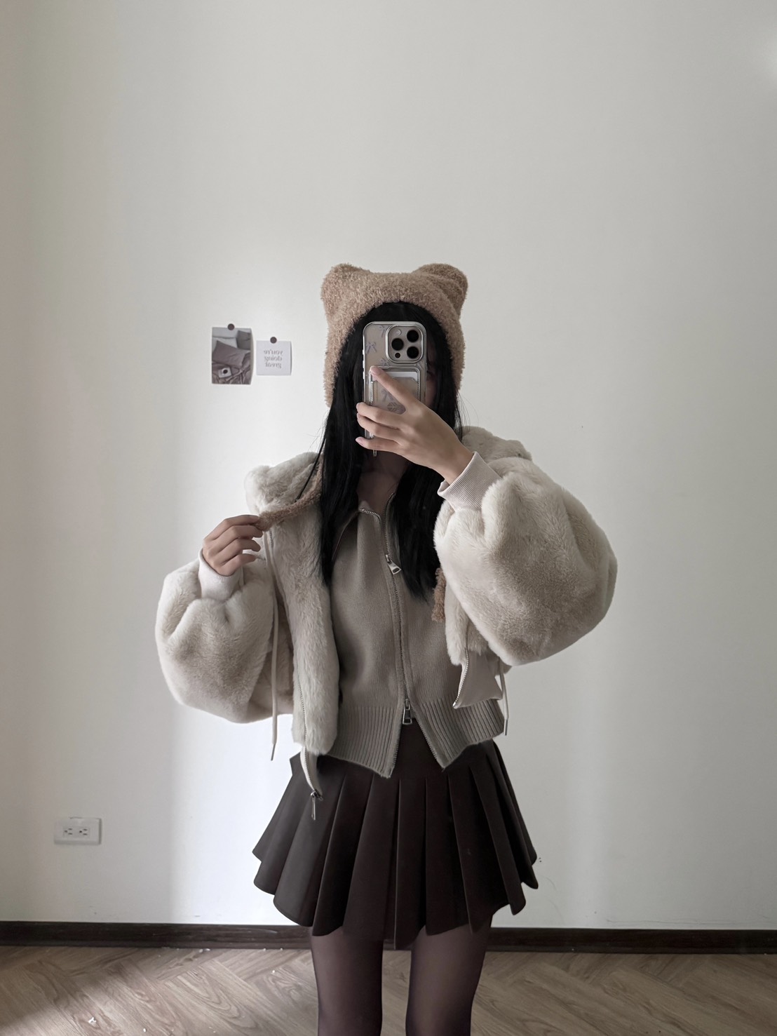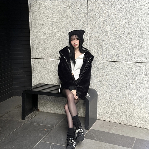 # 超可愛泰迪絨貓貓耳罩帽
