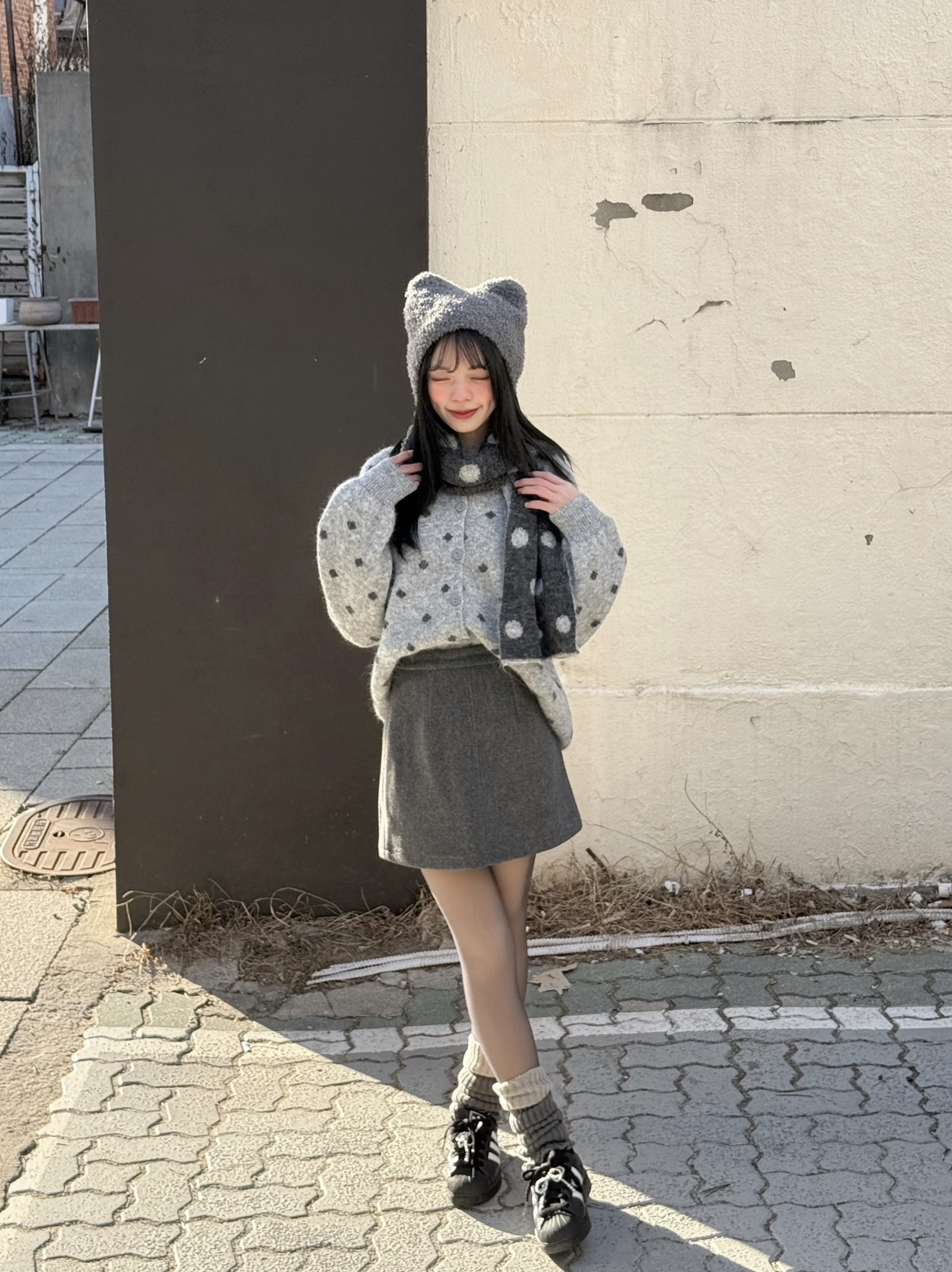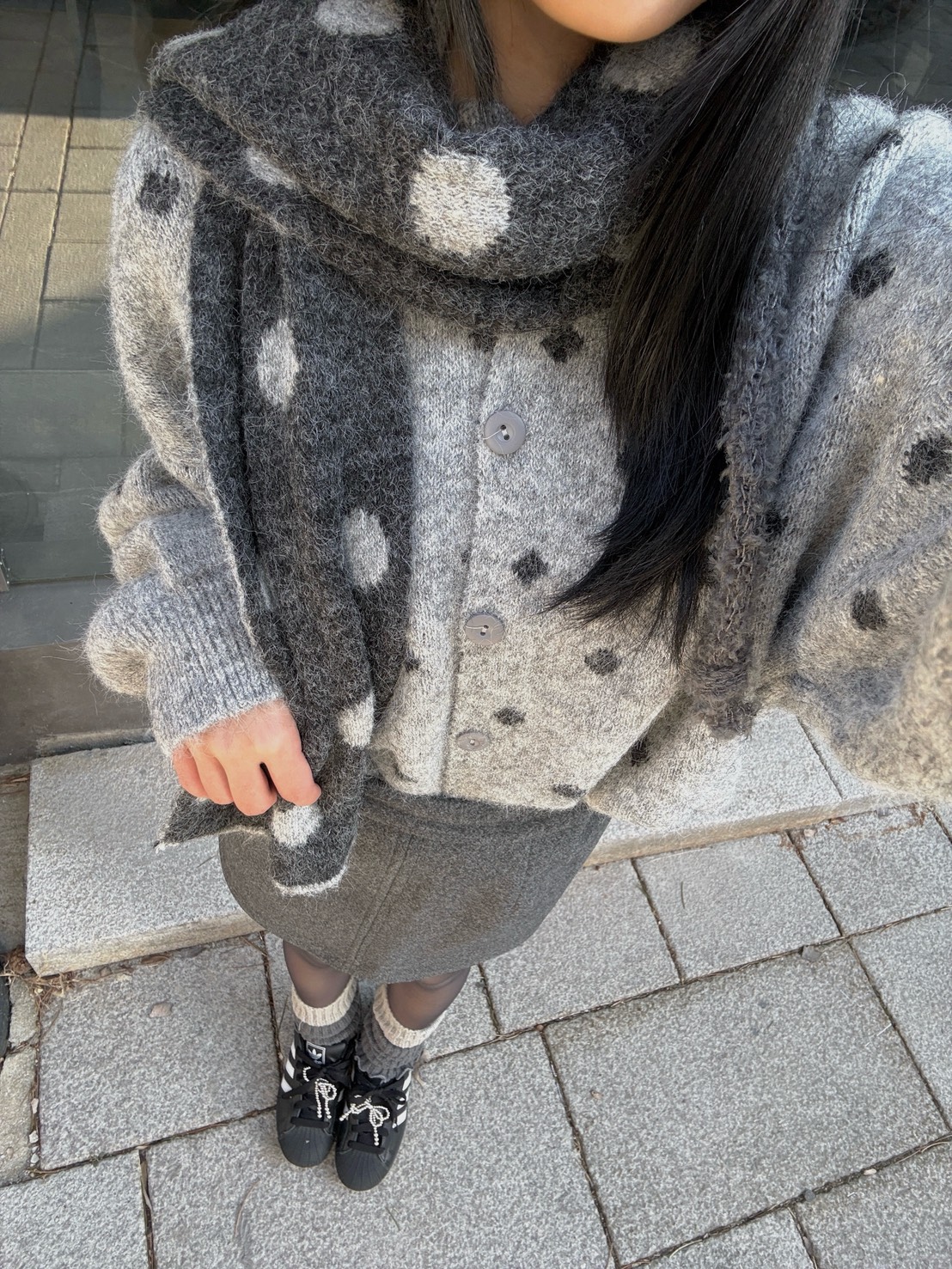 韓製 | 點點針織毛衣+圍巾s...