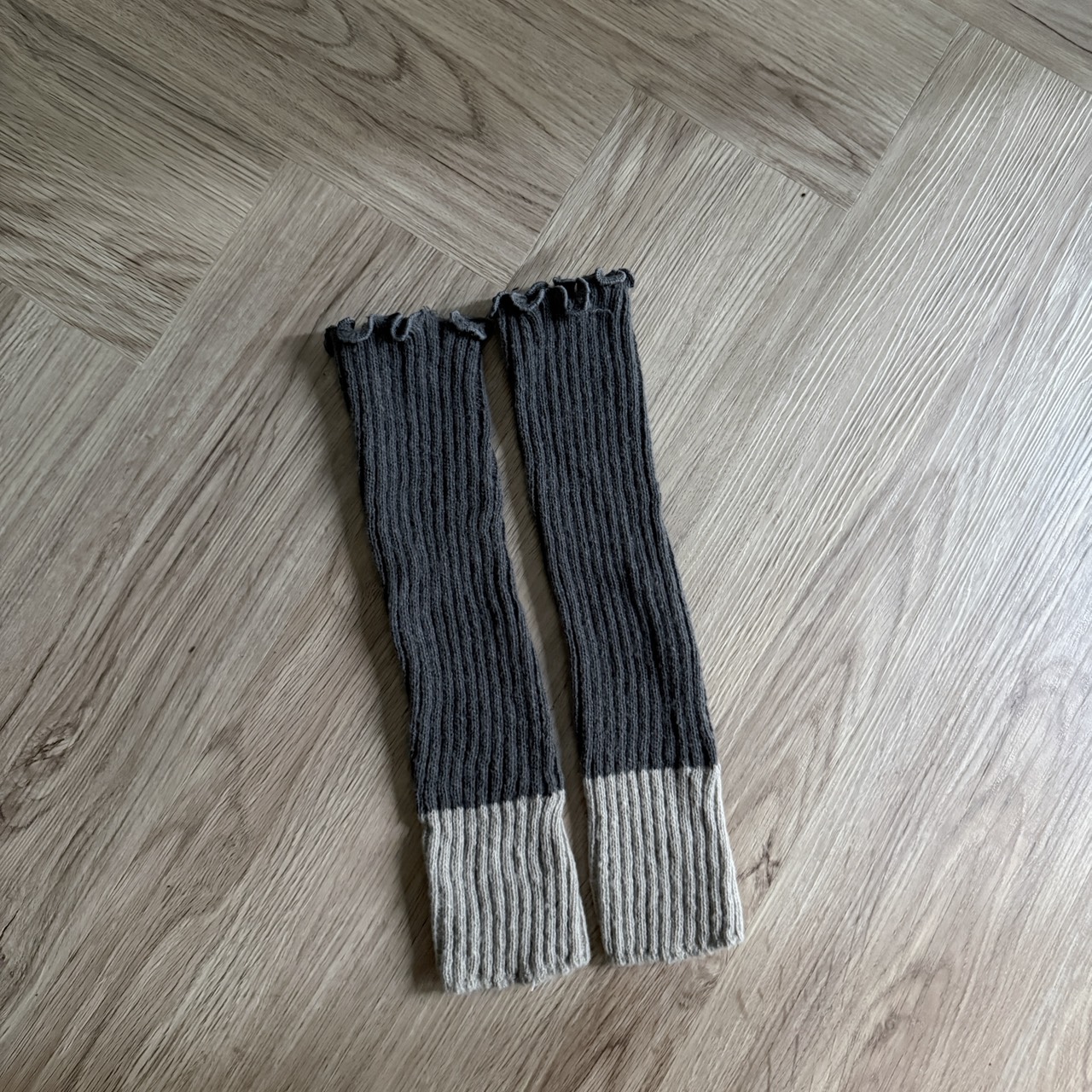 # 拼色坑條針織堆堆襪