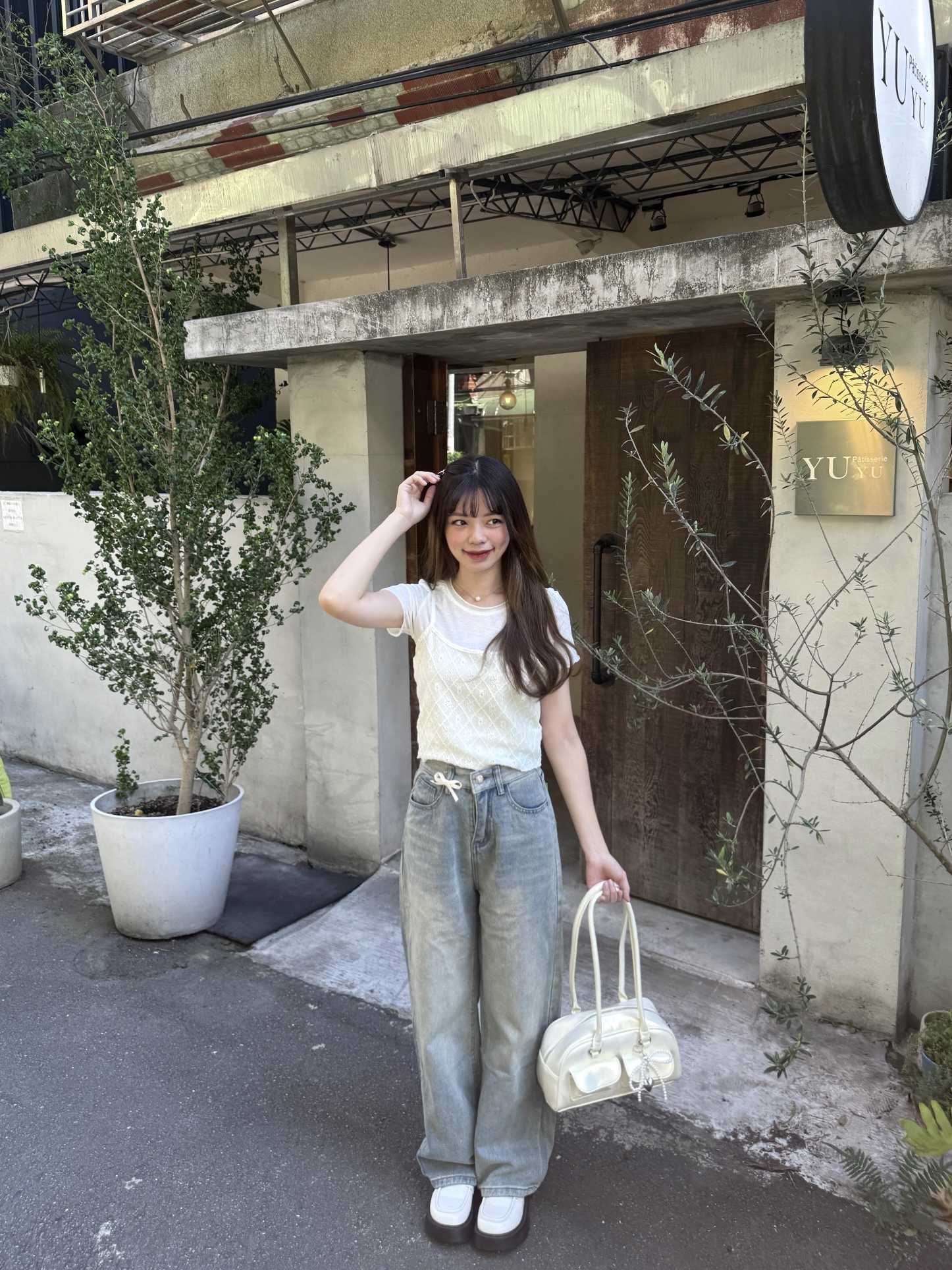 水洗刷色帶一點米色調 顏色很美也適合夏天