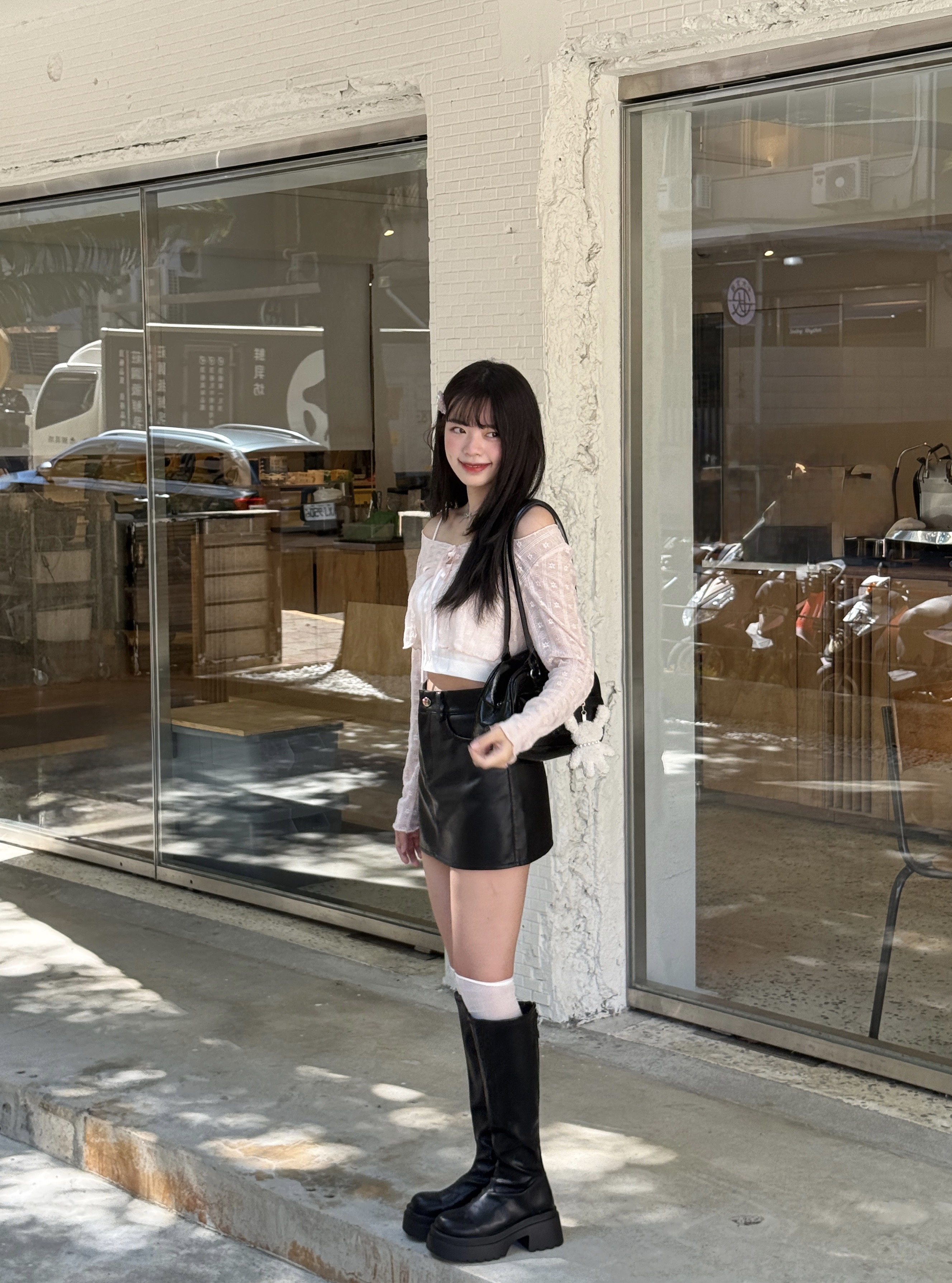 # 厚底顯瘦皮面後拉鍊長筒靴