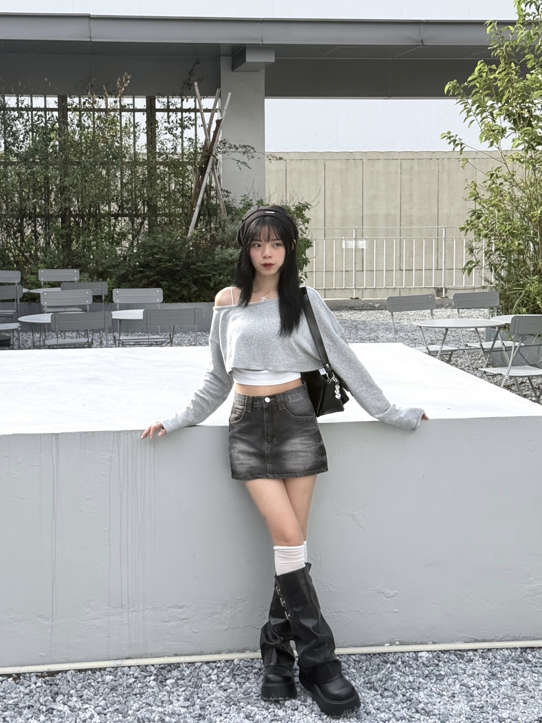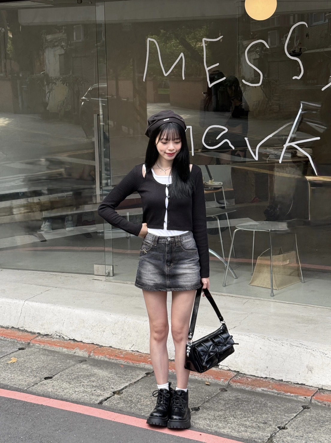 版娘自留! # 小個子深灰刷色牛仔短裙