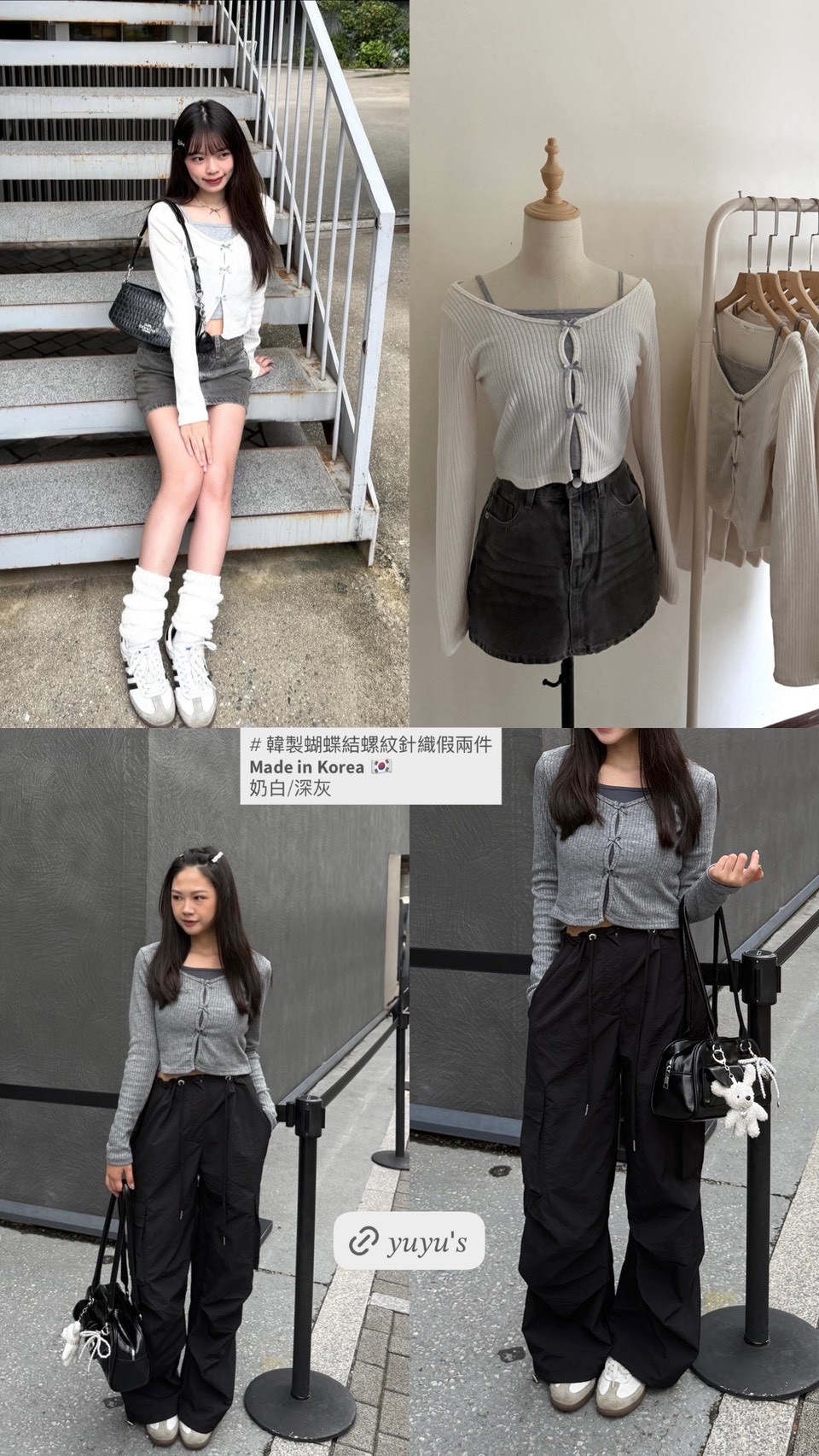 # 韓製蝴蝶結螺紋針織假兩件
