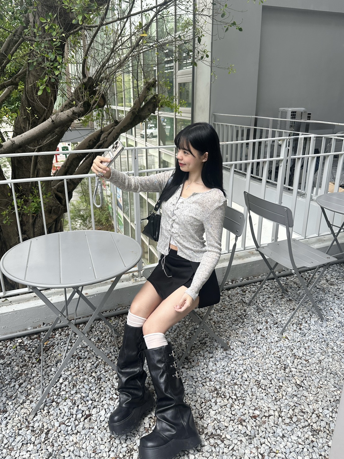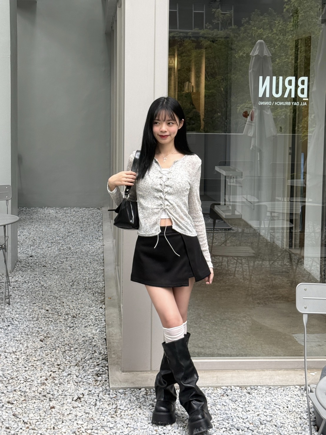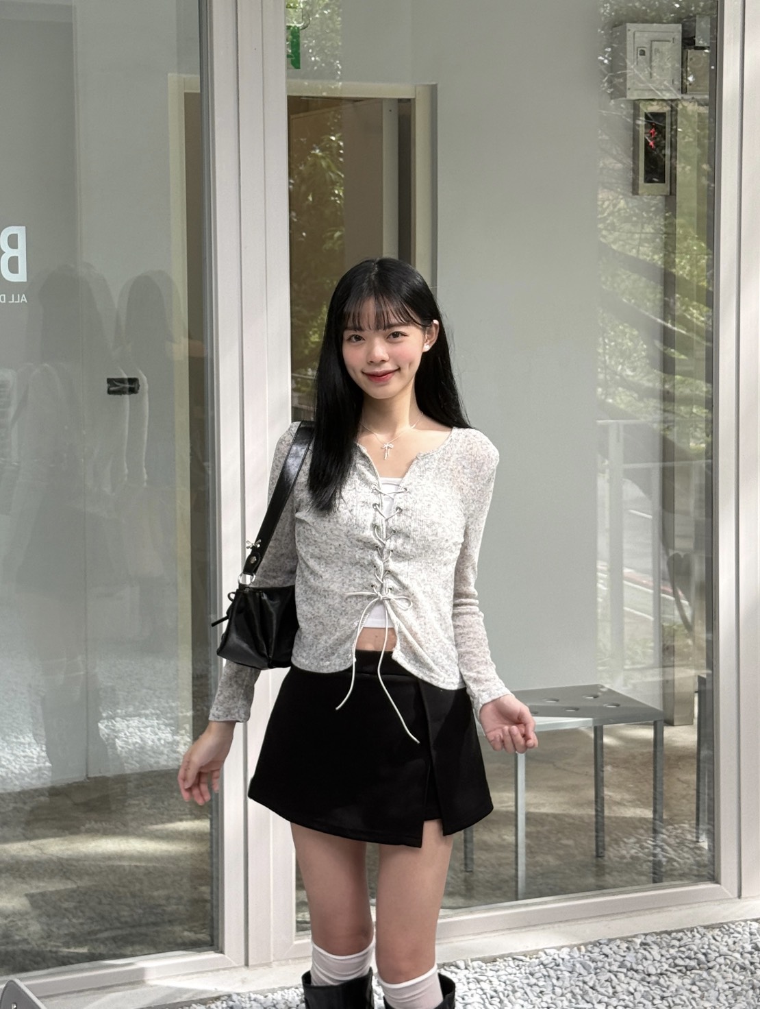 混灰感色調微透細針織+交叉綁帶౨ৎ