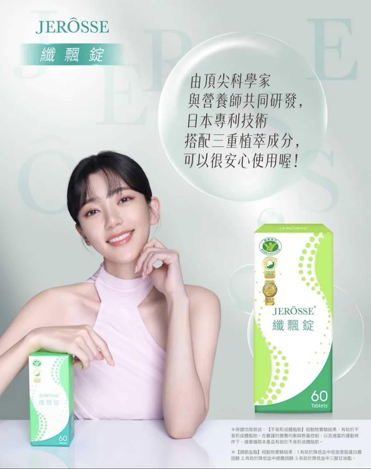 成分:L一肉酸、綠茶萃取物、微結晶狀a-纖維素、荷葉萃取物、脂肪酸蔗糖酯、二氧化矽硬脂酸鎂、乙基纖維素、羥丙基甲基纖維素、 高防潮水性膜衣(聚乙烯醇、二氧化鈦、滑石粉 、卵磷脂、玉米糖膠)、滑石粉、丙二醇、二氧化鈦、食用黃色四號、食用黄色五號