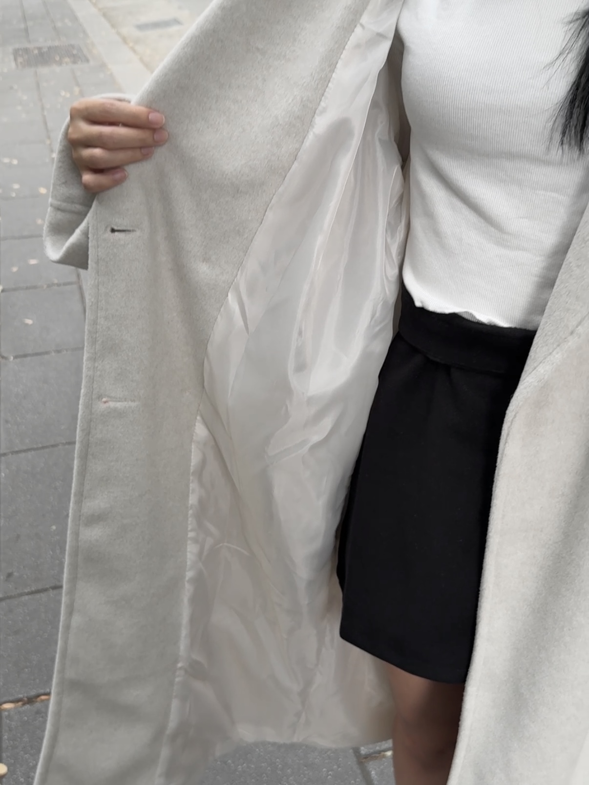 外套是柔軟好摸的羊毛感毛呢面料