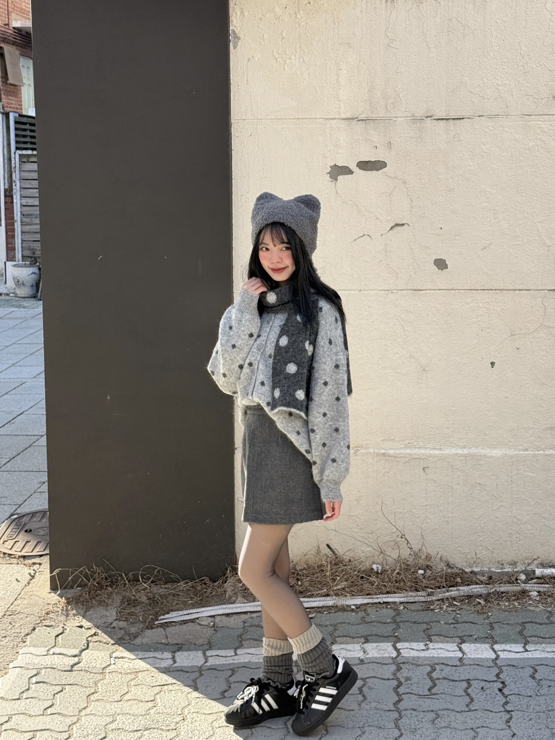韓製 | 點點針織毛衣+圍巾s...